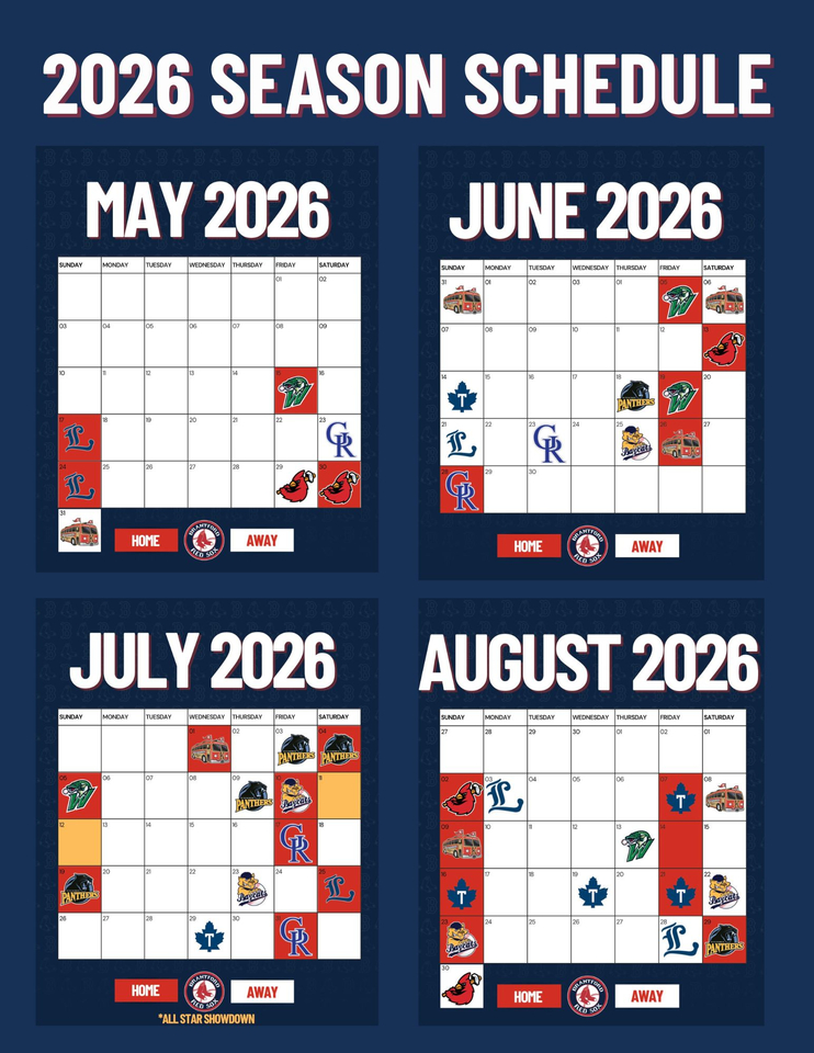 Downloadable PDF: 2026 Season ScheduleLast updated: April 21, 2025*Updates Regarding Game Start Times and Ticket Information will be announced soon